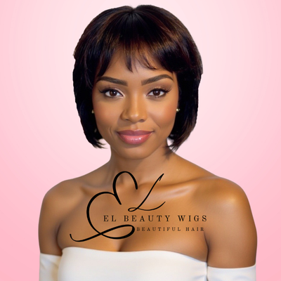 WIG | Black Wig | Short Black Wig with Highlights | Natural-Looking Wig for Women | Easy Wear Synthetic Wig